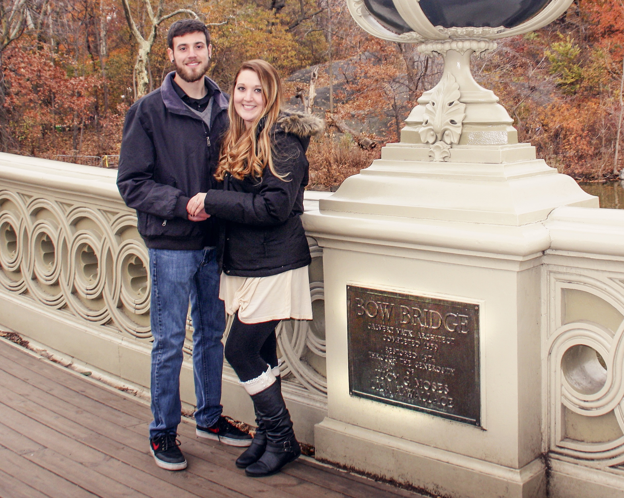 Spring 2018Ryan and Jessica planned a trip with their friends Alyssa and Jordan. Unbeknownst to Jessica, Ryan planned a “proposal” carriage ride through Central Park. The scenery was beautiful! The carriage took them to a fountain by the water where Ryan had a professional photographer waiting to take their pictures. It was there, at the “Bow Bridge,” where Ryan got down on one knee and proposed to her.